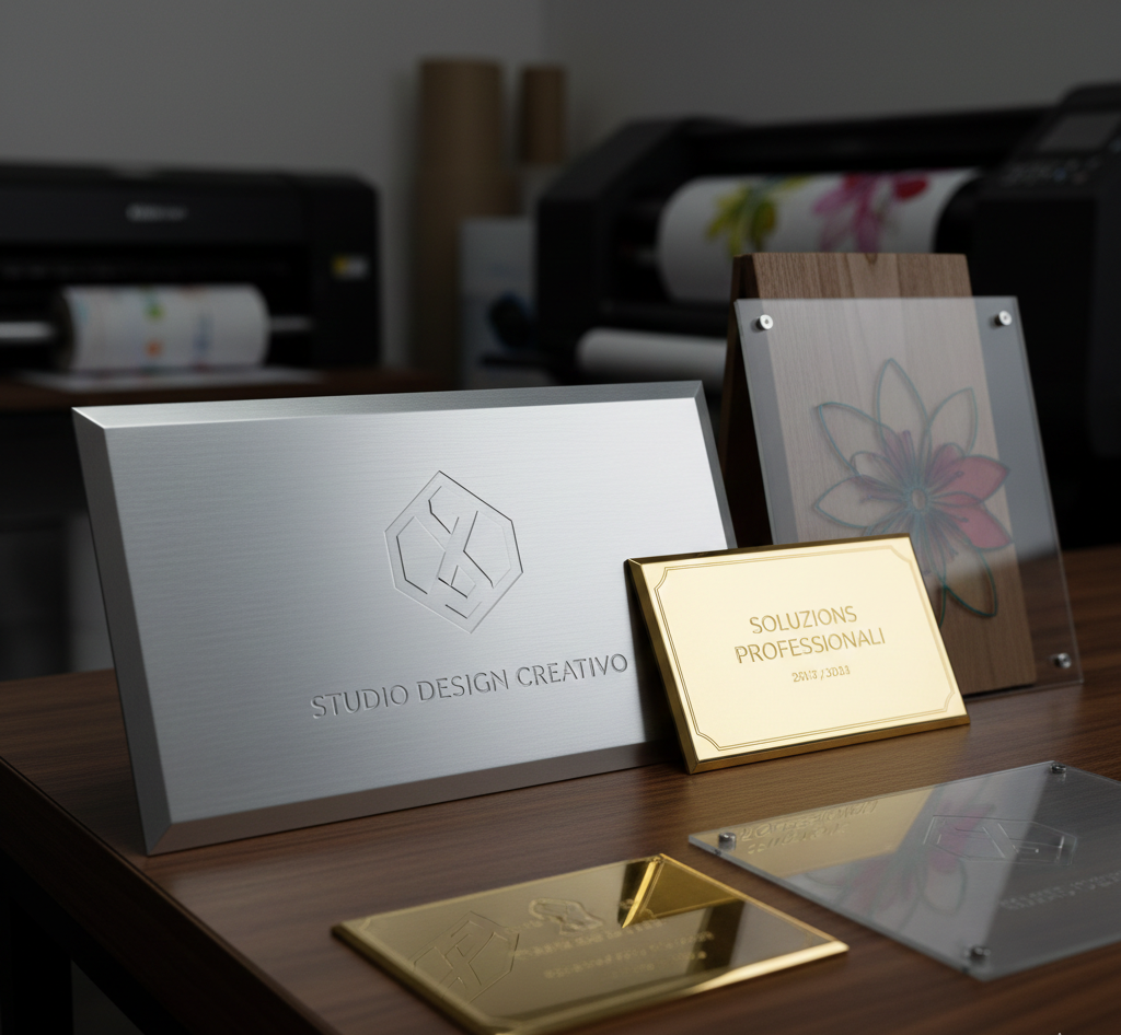 La nostra competenza si estende alla creazione di supporti duraturi e prodotti personalizzati per professionisti, aziende e società sportive. Realizziamo timbri autoinchiostranti e manuali in tempi rapidi, garantendo precisione millimetrica per ogni logo o dicitura. Se cerchi eleganza e visibilità, progettiamo targhe personalizzate in diversi materiali, perfette per studi professionali o come insegne di rappresentanza.