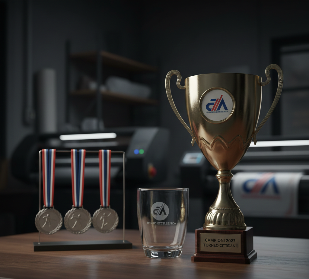 coppe, trofei e medaglie, trasformando ogni premio in un pezzo unico e memorabile. Che si tratti di un ufficio da allestire o di un evento sportivo da premiare, offriamo soluzioni su misura che uniscono qualità artigianale e tecnologie moderne.